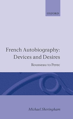 Informed by a sophisticated awareness of recent theoretical debates, Sheringham conceives autobiography as a distinctively open form of writing, perpetually engaged with different forms of `otherness'. Manifestations of the Other in the autobiographical process - from the reader, who incarnates other people, to ideology, against which individual truth must be pitted, to the potential otherness of memory itself - are traced through a scrutiny of the `devices and desires' at work in a range of texts from Rousseau's Confessions, to Stendhal's Vie de Henry Brulard and Sartre's Les Mots. Other writers examined include Chateaubriand, Gide, Green, Leiris, Leduc, Gorz, Barthes, Perec, and Sarraute.