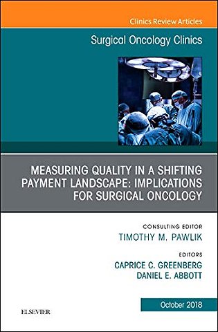 This issue of Surgical Oncology Clinics of North America, guest edited by Drs. Caprice C. Greenberg and Daniel E. Abbott, is devoted to Measuring Quality in a Shifting Payment Landscape: Implications for Surgical Oncology. Drs. Caprice C. Greenberg and Daniel E. Abbott have assembled expert authors to review the following topics: Implications of the Affordable Care Act or Surgery and Cancer Care; Repealing the Affordable Care Act and Implications for Cancer Care; Quality Measurement and Pay for Performance; Surgical Collaboratives for Quality Improvement; Big Data and Cancer Care; Cancer Care Delivery Research; Engaging Stakeholders and Patient Partners; Beyond Morbidity and Mortaility - Outcomes that Matter to Patients; Regionalization and its Alternatives; The Economics of the End of Life: Power of Attorney, Palliative Care, Utilization of Hospice; The Accountable Care Organization for Surgical Care; and more!