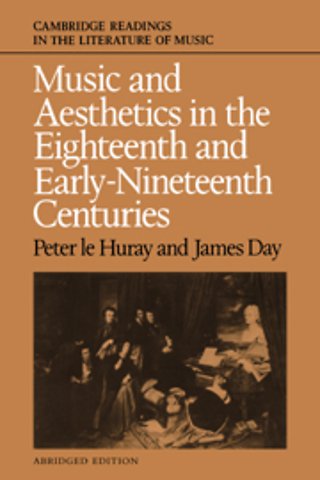 Preface to the abridged edition; Preface to the first edition; Introduction; Reflexions critiques sur la poesie et sur la peinture (1719) Du Bos; An Inquiry into the Original of our Ideas of Beauty and Virtue (1725) Hutcheson; Three Treatises (1744) Harris; Les beaux-arts reduits a un meme principe (1746) Batteux; 'Discours preliminaire' from the Encyclopedie (1751) d'Alembert; An Essay on Musical Expression (1753) Avison; 'Genie', from the Encyclopidie (1757) de Jaucourt; 'Le Gout, from the Encyclopedie (1757) Voltaire; A Philosophical Enquiry into the Origin of our Ideas of the Sublime and the Beautiful (1757) Burke; Essai sur l'origine des langues (1764) Rousseau; Sensibilite', `Le Sublime', from the Encyclopedie (1765) de Jaucourt; 'Le Genie', `L'Imitation' (with Framery's commentary), `Le Natural', `Le Gout', `L'Unite de melodie', from the Dictionnaire de musique (1767) Rousseau; 'Aesthetik', `Leidenschaften', `Ausdruck in der Musik', `Genie', Begeisterung', `Musik', `Naturlich', `Erhaben', from the Allgemeine Theorie der schonen Kunste (1771) Sulzer; `Lettre ... sur la musique, from (1773) Gluck; `Preliminary Discourse' from A General History of the Science and Practice of Music (1776) Hawkins; Entretiens sur l'etat de la musique grecque au quatrieme siecle (1777) Barthelemy; La poetique de la musique (1785) La Cepede; `Versuch einer Vereinigung alley schonen Kunste', from Berlinische Monatsschrift (1785) Moritz; Discourse xiii (1786) Reynolds; `Essay on Musical Criticism', from A General History of Music (vol. 3) (1789) Burney; Essays on the Nature and Principles of Taste (1790) Alison; Kritik der Urteilskraft (1790) Kant; System der Aesthetik (1790) Heydenreich; `Ueber Charakterdarstellung in der Musik', from Die Horen (1795) Korner; Essay sur la propagation de la musique en France (1796) Leclerc; From the Allgemeine musikalische Zeitung (1813), Kalligone (1800) Herder; Vorlesungen fiber schone Literatur und Kunst (1801), Vorlesungen fiber dramatische Kunst und Literatur (1808) Schlegel, A. W.; `The intangibility of music'; 'Musical beauty - form and content'; 'The beautiful and the sublime in music'; 'Humour in music', from the Allgemeine musikalische Zeitung (1805-7) and the Berlinische musikalische Zeitung (1805) Michaelis; `Le Beau', `Classique', `Romanesque', `Le Sublime' from the Dictionnaire des beaux-arts (1806) Millin; `Of classic and romantic poetry' de Stael; Die Welt als Wille und Vorstellung (1819) Schopenhauer; `Music and the other arts'; 'Musical interpretation of content'; 'The effect of music'; 'Form, technique and content in music'; 'The relationship between the musical means of expression and their content'; `Lyric and dramatic music'; 'Independent music', from Aesthetik Hegel; `Du romantique', from Le Globe (1825) Anon; Ueber Reinheit der Tonkunst (1825) Thibaut;'Bello', `Espressione', `Imitazione', `Romantico', `Sublime', `Unita', `Estetica' Lichtenthal; 'Reponse a fine question qui noun a ete faite par nos abonnes'; 'Revue des journaux de musique publiees daps les divers pays de I'Europe', from the Revue musicale (1827) Fetis; L'Histoire du romantisme (1829) Toreinx; 'Le romantisme en musique', from the Revue musicale (1830) E.F.; Substance of Several Courses of Lectures (1831) Crotch; 'Sur les dictionnaires de musique'; 'Polemique. Du mouvement et de la resistance en musique', from the Revue musicale (1831) Fetis; Kurze Encyclopddie der Philosophic (1831) Herbart; 'The importance of the imagination'; 'Emotion'; `The nature of the composer's inspiration'; 'That music is more precise than words'; Musical progress' (1831-46) Mendelsohn; 'Schonheit und Schon', `Begeisterung', `Romantik und Romantisch', `Erhaben' from the Universal Lexicon der Tonkunst (1834-8) Schilling; Filosofia della Musica (1836) Mazzini; 'Ideen fiber Baukunst und Musik', from Neue Zeitschrift fur Musik (1838) Becker; L'e