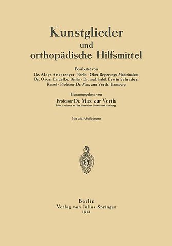 A. Allgemeines..- 1. Statistik.- 2. Gesetzliche Bestimmungen über die Gewährung orthopädischer Hilfsmittel.- 3. Werkstoffe.- Holz.- Leder.- Orthopädiestahl.- Leichtmetall.- Bänder und Gurte.- Filz.- Kunststoffe.- 4. Die orthopädische Werkstatt.- 5. Physiologische Mechanik.- 6. Der kunstgliedgerechte Stumpf.- Tragfähigkeit.- Ort der Absetzung.- Nachbehandlung.- 7. Das stumpfgerechte Kunstglied. Anforderungen an das Kunstglied. Gesamtwert des Kunstgliedes.- 8. Kunstglieder und orthopädische Hilfsmittel in den Tropen.- 9. Bestellung, Lieferung, Abnahme, Instandhaltung und Pflege.- 10. Grundlagen der Preisgestaltung. Von O.-Reg.-Med.-Rat Dr. O. Engelke, Berlin.- B. Kunstbein..- I. Grundlagen des Kunstbeinbaues.- 11. Stand und Gang.- 12. Statik und Mechanik des Kunstbeines.- 13. Messen und Aufbauen.- 14. Kunstbeinwerkstoffe.- 15. Paßteile und Halbfabrikate.- Der Kunstfuß.- Unterschenkel mit Kniegelenk („Kniewadenstück“).- Schienen.- Sonstige Halbfabrikate.- 16. Die wesentlichsten Stumpfformen an den unteren Gliedmaßen.- Fußstumpf.- Unterschenkelstümpfe.- Oberschenkelstümpfe.- II. Kunstbeinversorgung.- 17. Erstausrüstung Frischamputierter mit Kunstbeinen. Stumpfstrumpf. Kunstbeinschuh.- Stumpfstrumpf.- Kunstbeinschuhe.- 18. Krücke, Lazarettbein, Behelfsbein.- Die Krücke.- Lazarettbein.- Behelfsbein (Interimsbein).- 19. Die körperliche Schulung des Beinamputierten, insbesondere die Gehschule.- Gehschule für Einbeiner.- Gehschule für Ohnbeiner.- III. Die einzelnen Ersatzglieder am Bein.- 20. Ersatz bei Fußstümpfen.- Fußwurzelkunstglied.- 21. Unterschenkelbein.- Der kunstgliedgerechte Unterschenkelstumpf.- Der lange Unterschenkelstumpf.- Der kurze Unterschenkelstumpf.- 22. Oberschenkelbein.- Werkstoff.- Technik des Oberschenkelbeinbaues.- Der überlange Oberschenkelstumpf.- Der Oberschenkelkurzstumpf.- Befestigung am Körper und Aufhängung.- Beckengurt.- Vorbringer des Unterschenkels.- Hemmungen und Anschläge.- Kniefeststellung.- Das Bremsknie.- Systeme und Typen.- 23. Hüftauslösungsbein.- 24. Ersatzglieder für Doppelbeinamputierte.- 25. Das Stelzbein.- C. Künstliche Arme..- 26. Grundlagen des Kunstarmbaues.- 27. Der Arbeitsarm.- 28. Der Schmuckarm.- Der willkürlich bewegliche Schmuckarm.- D. Orthopädische Hilfsmittel..- I. Allgemeine Grundlagen für den Bau orthopädischer Hilfsmittel.- 29. Voraussetzungen.- 30. Konstruktionsprinzipien.- 31. Technische Ausführung.- II. Spezielle orthopädische Hilfsmittel.- 32. Rumpf und Kopf.- a) Der stützende bzw. entlastende Apparat.- b) Der redressierende, korrigierende Apparat.- c) Bandagen.- d) Leibbinden.- Bruchbänder.- 33. Obere Gliedmaßen.- a) Der stützende, führende Apparat.- b) Der korrigierende Apparat.- 34. Untere Gliedmaßen.- a) Der Schellenapparat.- b) Der Schienenhülsenapparat.- 35. Die Schuheinlage..- Normalfuß.- Belastungsbeschwerden.- Behandlung der Belastungsbeschwerden.- Anforderungen an die Einlage.- Einlagenform.- Der Werkstoff.- Einige Einlagentypen.- Zusammenfassung.- E. Orthopädische Schuhe..- 36. Gesetzliche Grundlagen.- 37. Geschichtliches.- 38. Bestandteile und Merkmale.- a) Der Leisten.- b) Der Boden.- c) Der Schaft.- d) Sonderarbeiten aus Kork, Holz und Filz.- 39. Die Schuhtypen.- 40. Pflege und Instandsetzung.- F. Krankenfahrzeuge..- Namen- und Sachverzeichnis.